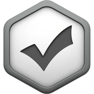 Flat vector icon of a hexagonal shield with rounded corners containing a checkmark. Dark gray outline and symbol on white background. Clean, minimalist verification badge style. emoji