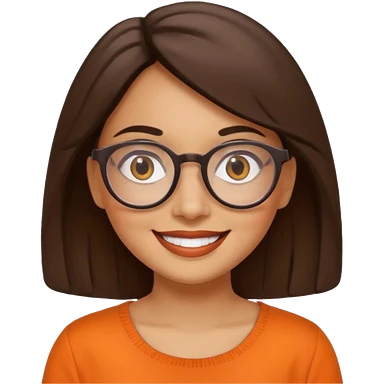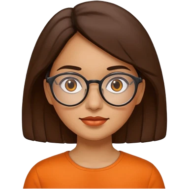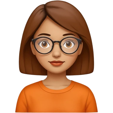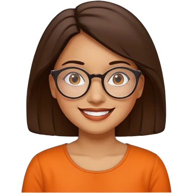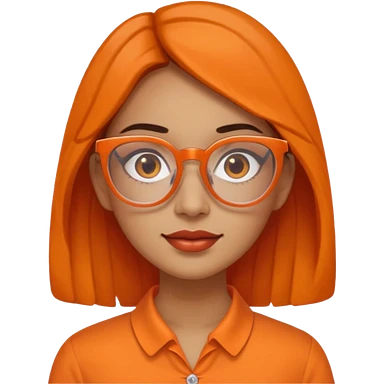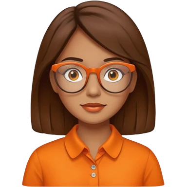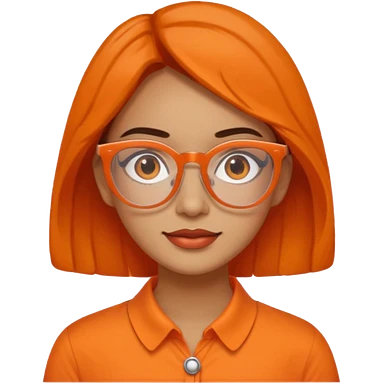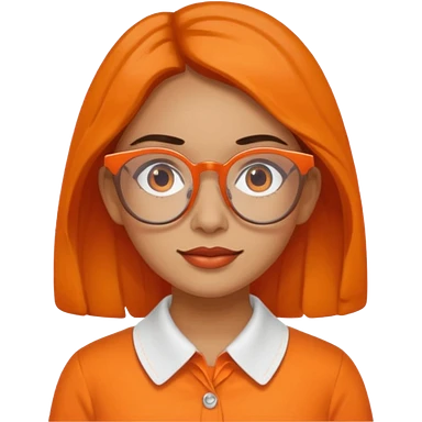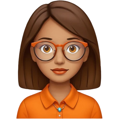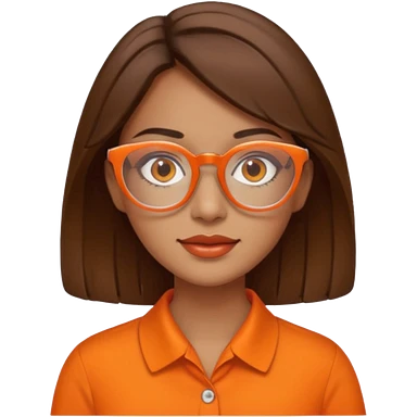 hispanic woman with brown hair, orange sectacles and orange blouse with a collar emoji