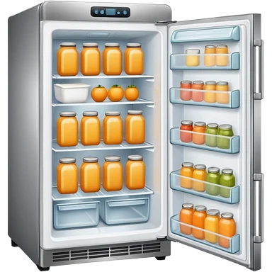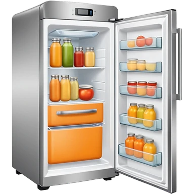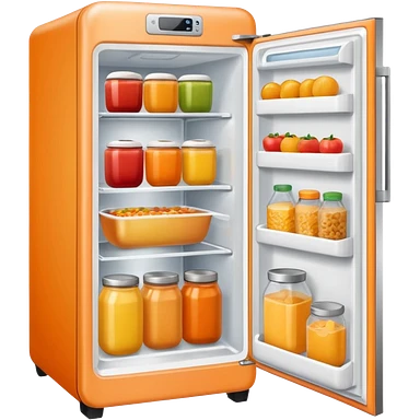 Hi refrigerator ! light orange color emoji size: 512*512 inside: full of ingridents emoji