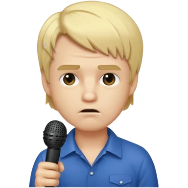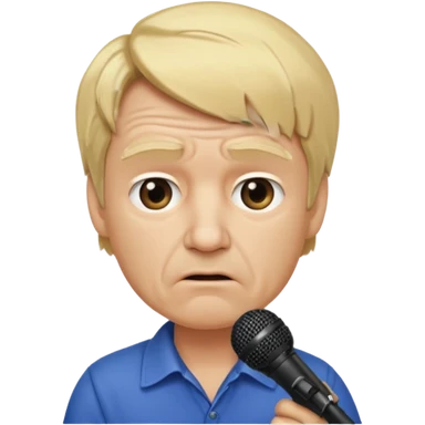 him with a mini microphone and a grumpier face blond hair wrinkles bold emoji