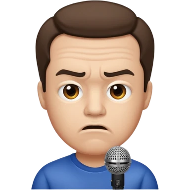 him with a mini microphone and a grumpier face emoji