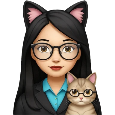Hispanic woman with long silky hair and glasses in a cat suit emoji