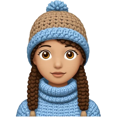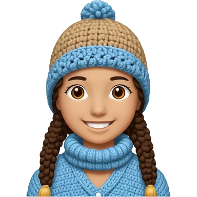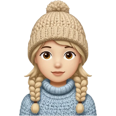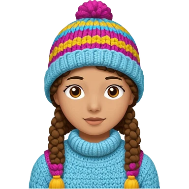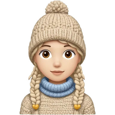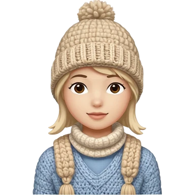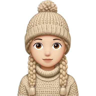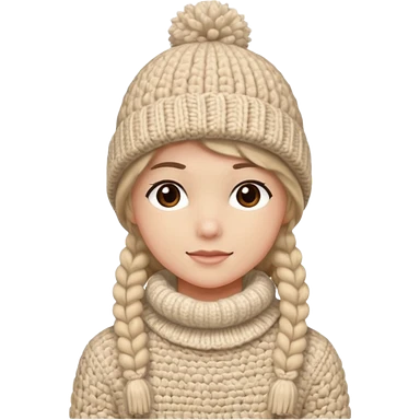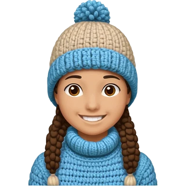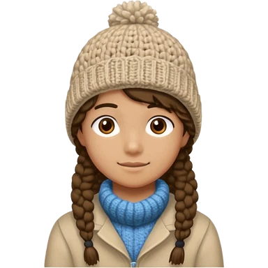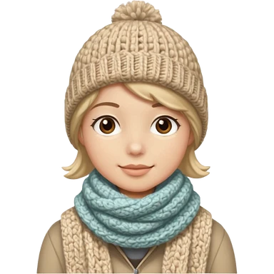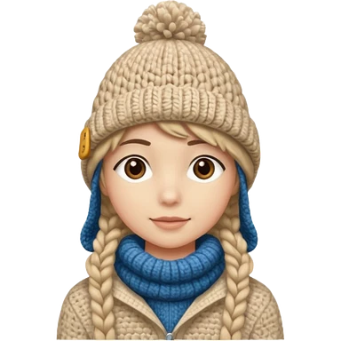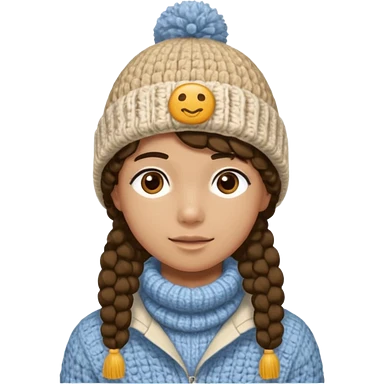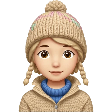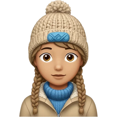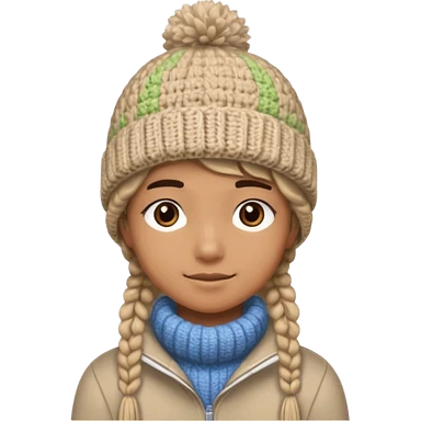 high school student wearing a crochetted winter hat. the hat should be an oatmeal color and texture emoji