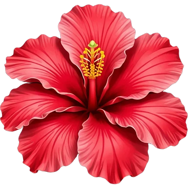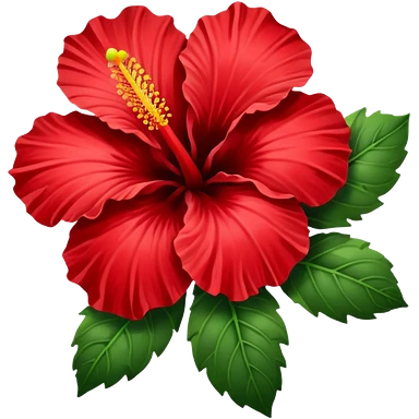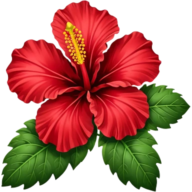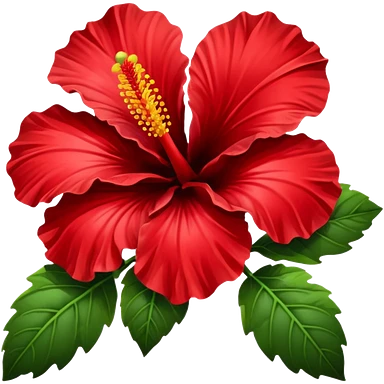 Hibiscus with a stem and many leaves in the style of Apple emojis emoji