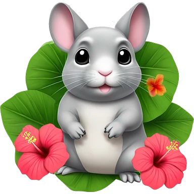 Hibiscus with a stem and many leaves in the style of Apple emojis emoji