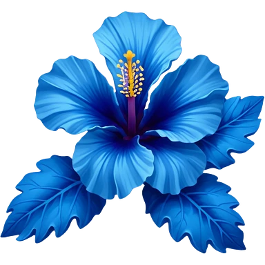 Change the lilac hibiscus with green leaves to blue and lime green colors, keep the emoji style, with no background. emoji