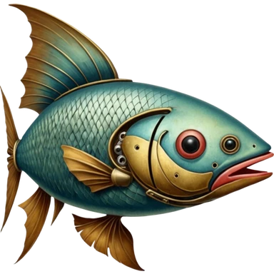 cinematic steam-punk - hieronymus bosch phantasmagoric mutated creatures - hybrids of birds and fish emoji