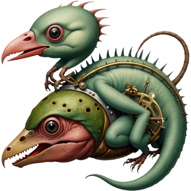 cinematic steam-punk - hieronymus bosch phantasmagoric mutated creatures - hybrids of human and reptiles emoji