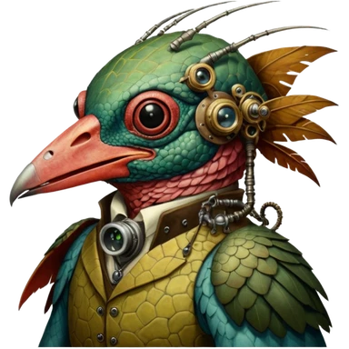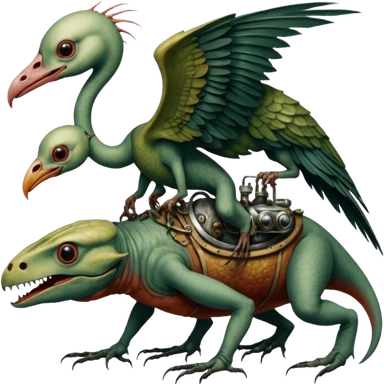 cinematic steam-punk - hieronymus bosch phantasmagoric mutated creatures - hybrids of human, birds and and reptiles emoji