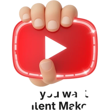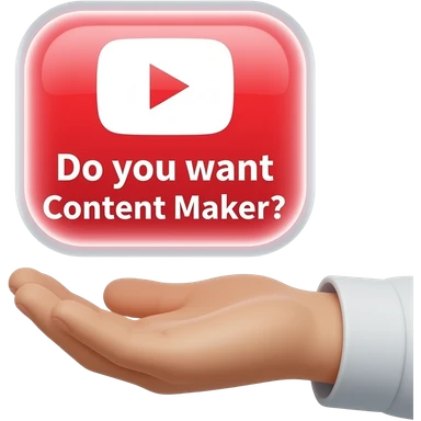 high-detail photograph of a human hand holding a floating, holographic YouTube logo that emits a vibrant red and white inner glow. The text 'Do you want Content Maker?' is displayed in a modern, bold, sans-serif font below the logo, with a subtle glow effect on the text. emoji