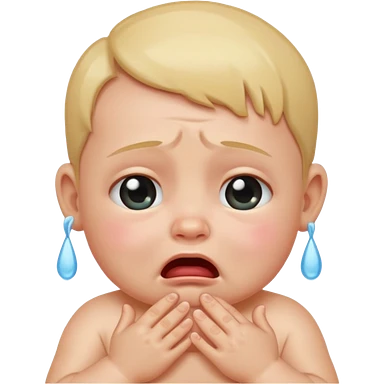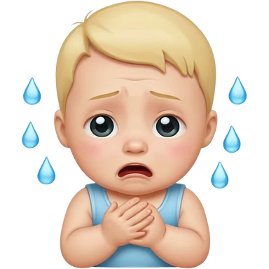 a crying asian handsome guy wearing a blue knit with white shirt, facepalming with only one hand, with a macbook, only upper body, high quality. emoji