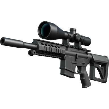 sleek futuristic sniper rifle, extremely long barrel, missile elements, high-tech attachments emoji