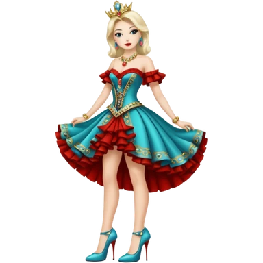 Swedish girl in the biggest ball gown with green crystals and high heels emoji