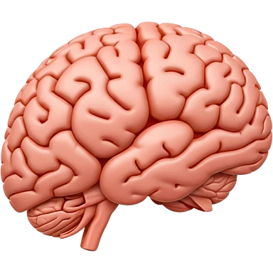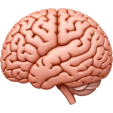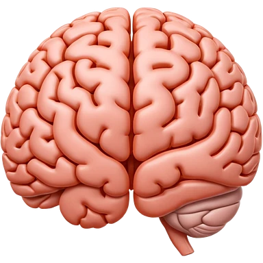 "Realistic 3D human brain emoji, detailed neural folds, soft reflections, glossy texture, subtle shadows, rounded friendly emoji shape, high resolution, transparent background" emoji