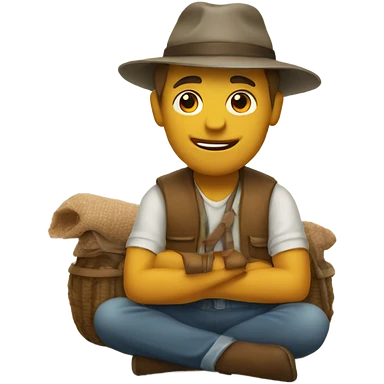 Japanese high school boy with camera and backpack during school field trip at historical site emoji