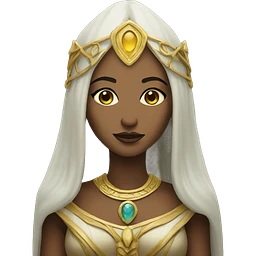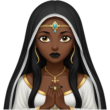 light skin woman, wavy black half long hair, looking like a high priestess emoji