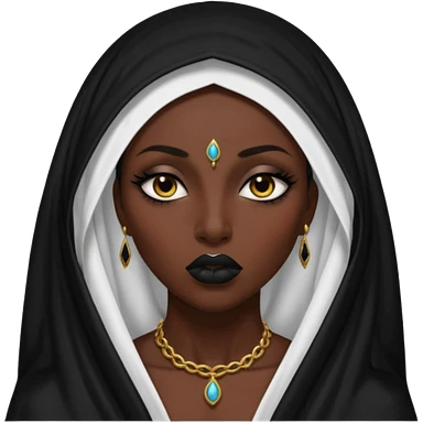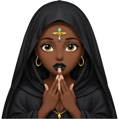 Priestess lifting black veil from her lips, blasphemous erotic energy emoji