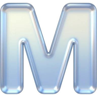 High-resolution 3D icon of the letter 'M' made of frosted holographic glass with soft internal glows. Isolated on a plain white background, centered, symmetrical, studio lighting, hyper-realistic, 4k emoji