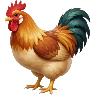 steampunk - The huge ivory hen has thick male feet instead of claws like a Hobbit, the hen's head is disheveled with feathers, depicted at a 45-degree angle. emoji