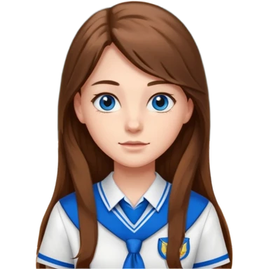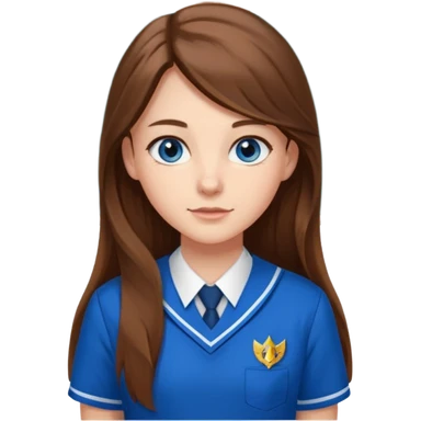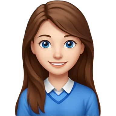high school class room with a pretty female high school student with long brown hair, blue eyes emoji