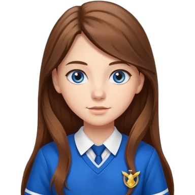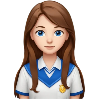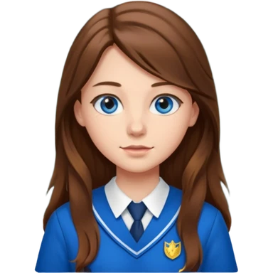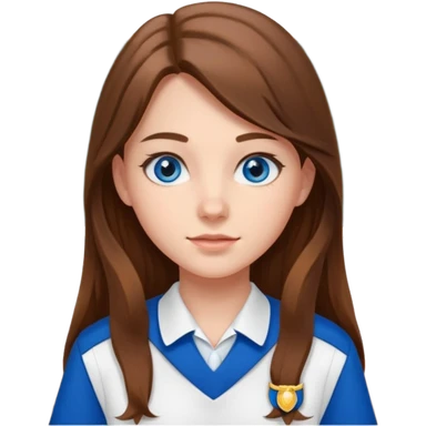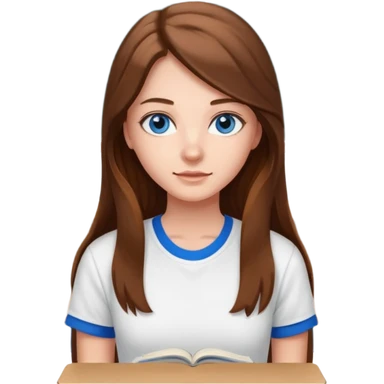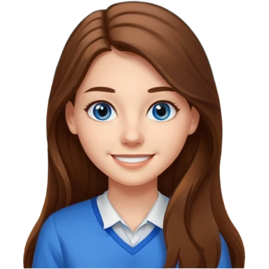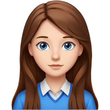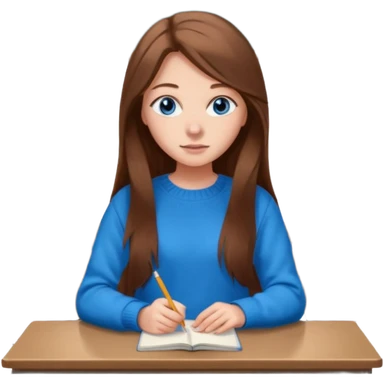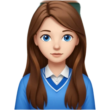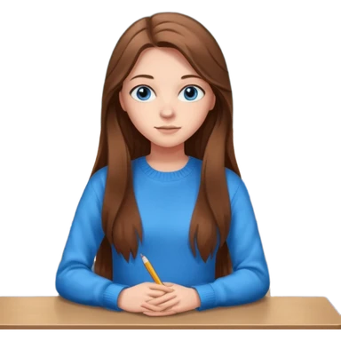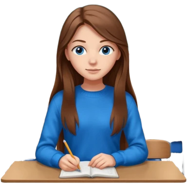 high school class room with a pretty female high school student with long brown hair, blue eyes sitting in front of the blackboard emoji | AI Emoji Generator