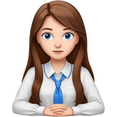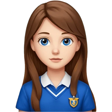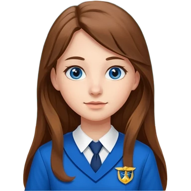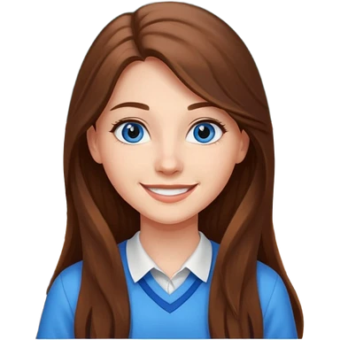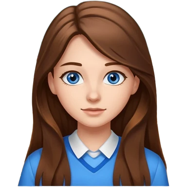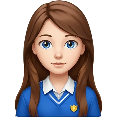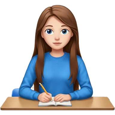 high school class room with a pretty female high school student with long brown hair, blue eyes sitting in front of the blackboard emoji | AI Emoji Generator