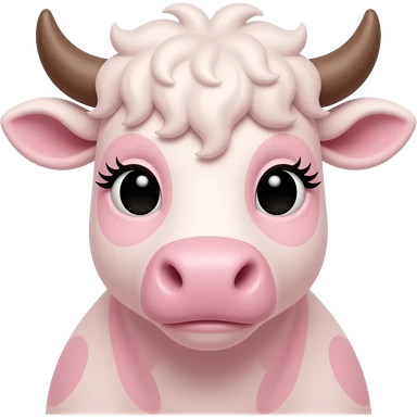highly detilsed cotton-pink cow with curly bangs pink eylashes emoji