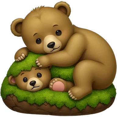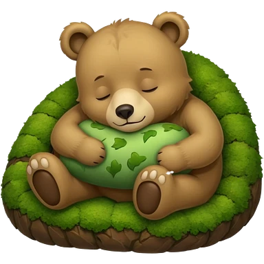 bear cub hugging moss pillow asleep emoji