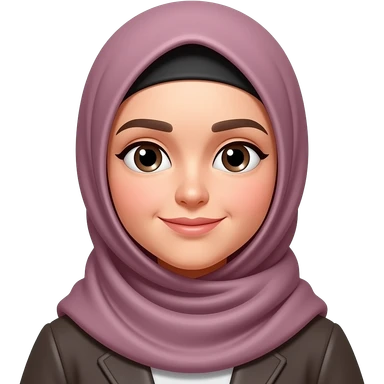Hijab girl light brown skin purple hijab smiling hugging her cute grey and white cat emoji