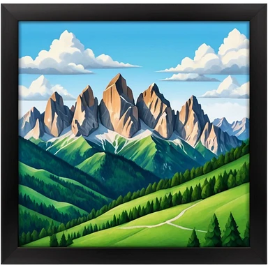 Hiking in the dolomits italy- with a sea and trees and Mountains emoji | AI Emoji Generator