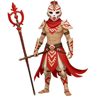 Hilichurl (from Genshin Impact) (half body) (with a white mask with red tribal markings on it) emoji | AI Emoji Generator