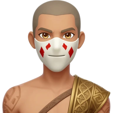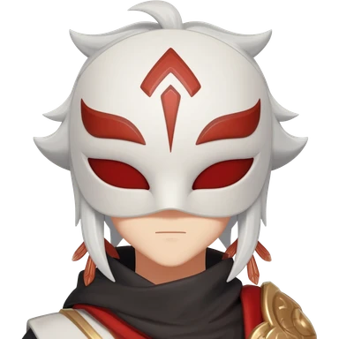 Hilichurl (from Genshin Impact) (half body) (with a white mask with red tribal markings on it) emoji | AI Emoji Generator