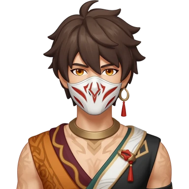Hilichurl (from Genshin Impact) (half body) (with a white mask with red tribal markings on it) emoji