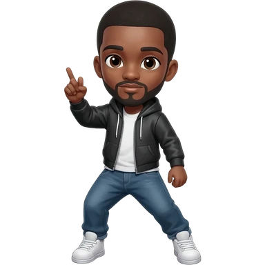 hip hop artist wearing a black jacket. the jacket has a red collar. emoji