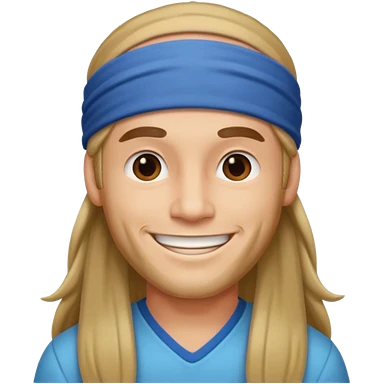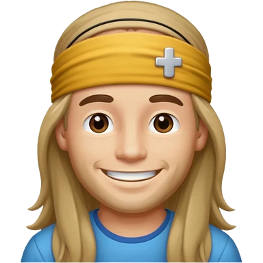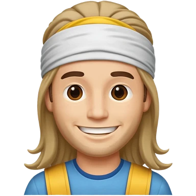 thin guy with shoulder length brown hair and mustache and smile and glasses wearing hippie clothes emoji