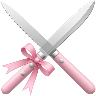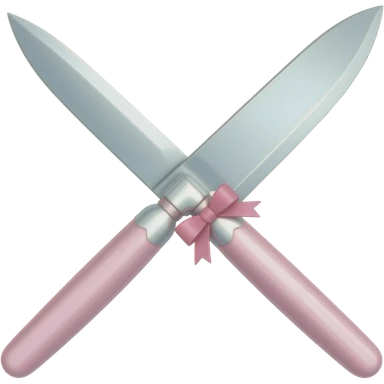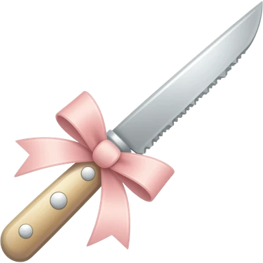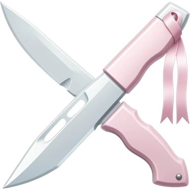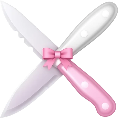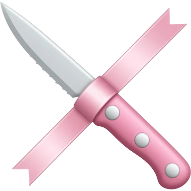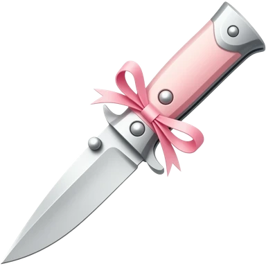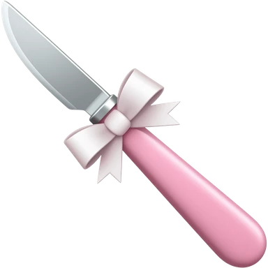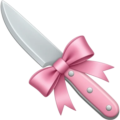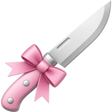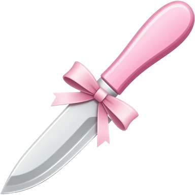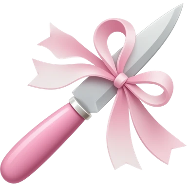 Pastel pink dainty neat cute thin slim lanky long sharp edgy knife with a tiny pastel pink ribbon emoji