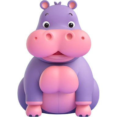 3D emoji style hippo, full body, sitting, simple and cute, round features, expressive eyes emoji