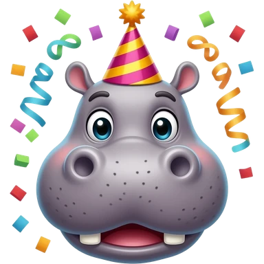 Hippo face birthday! Party hat and confetti and happy on its birthday and all the accessories and celebrations emoji