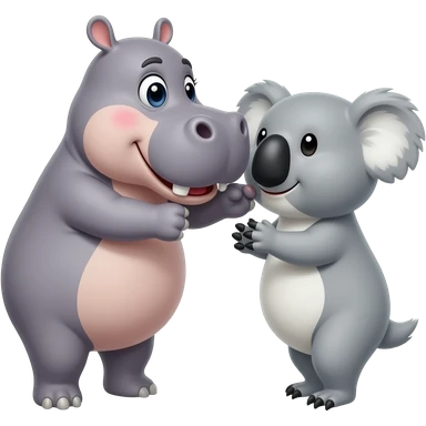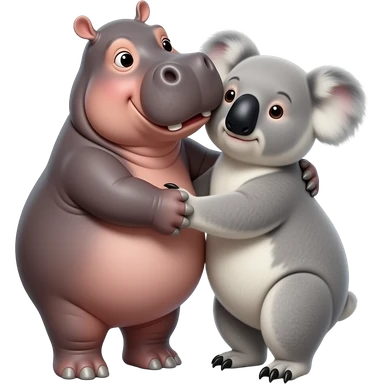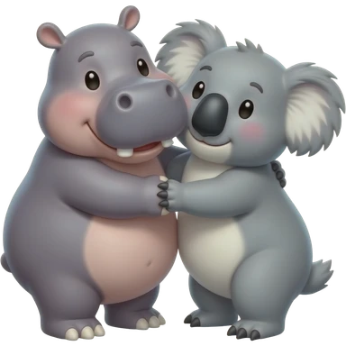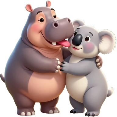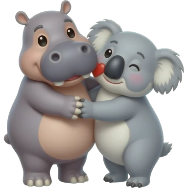 Hippo kissing koala face in love. Hugging. Realistic. Not cartoon. emoji