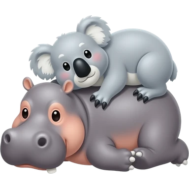 hippo laying down with koala undernesth it with legs wrapped around hugging emoji