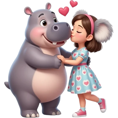 Hippo kissing girl koala face in love. Cuddling. Hugging. Realistic. Not cartoon. Hearts. Not animated. emoji