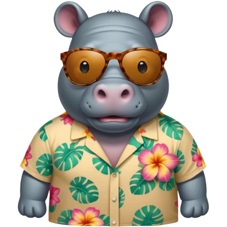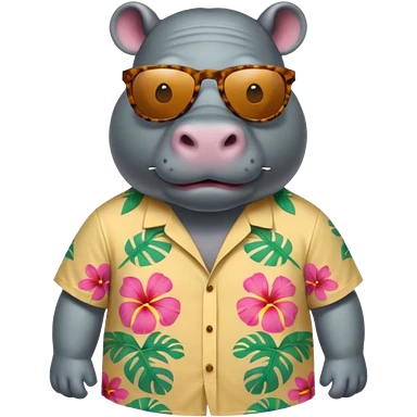 hippo with aloha shirt wearing sunglasses emoji | AI Emoji Generator