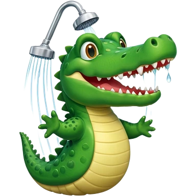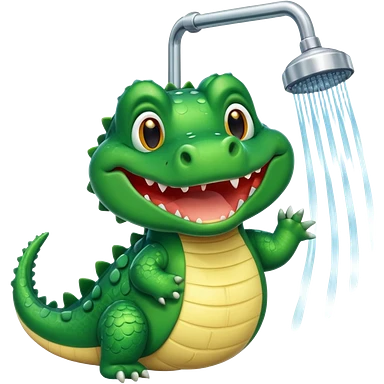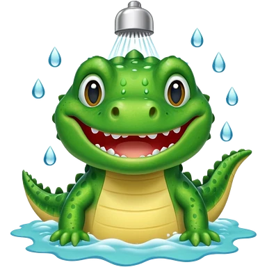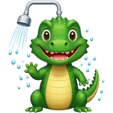Cute crocodile is showing under the shower emoji