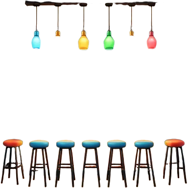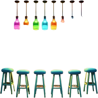 A 3D cartoon bar interior with a counter, glowing shelves of colorful bottles, tall stools, and hanging lights, warm ambient lighting, realistic reflections, Memoji-style. Photo Frame. Negative : Transparent. emoji