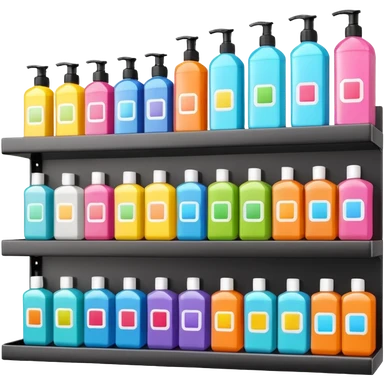 single row shampoo and stuff with Japan brand inside shelf same brand emoji