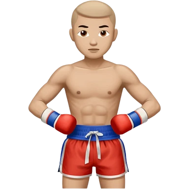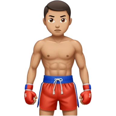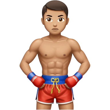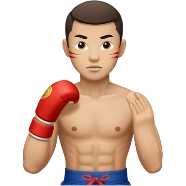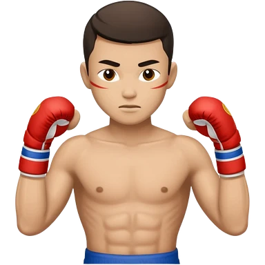 Create a Muay Thai fighter with his guard, like if he was covering himself and with a less serious expresión emoji