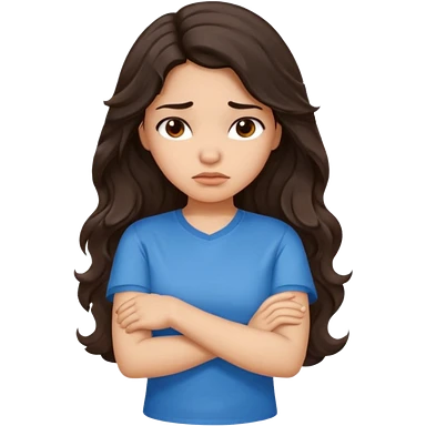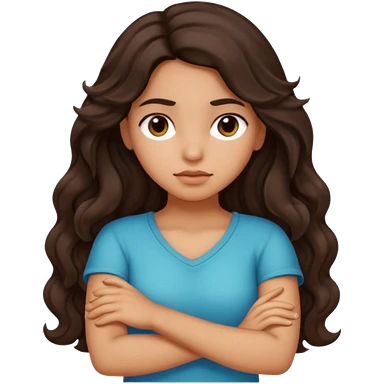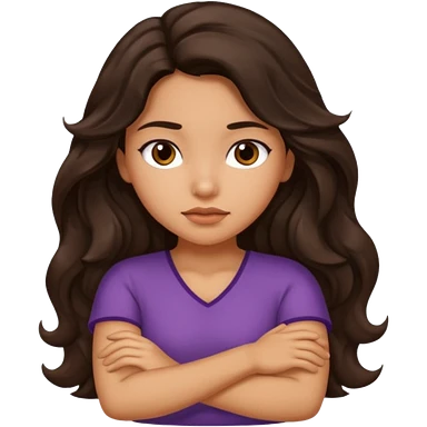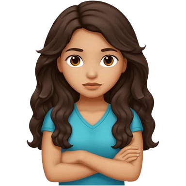 Hispanic girl with long dark brown wavy hair crossing her arms and pouting emoji