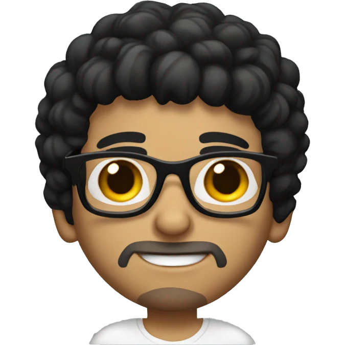 young hispanic guy with very curly black hair and no beard or mustache, and with sweet smile emoji