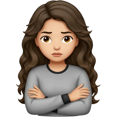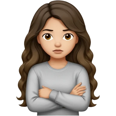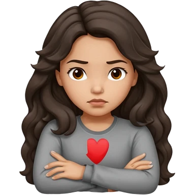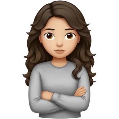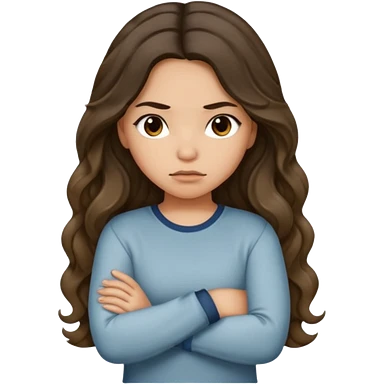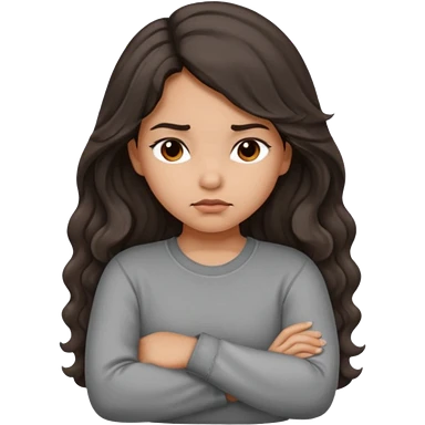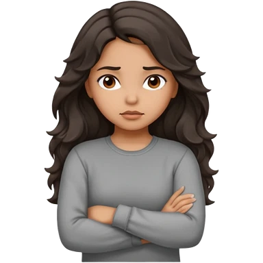 Hispanic light tan girl with long dark wavy hair pouting and arms crossed. Wearing a long sleeve. Hair with middle part. emoji | AI Emoji Generator