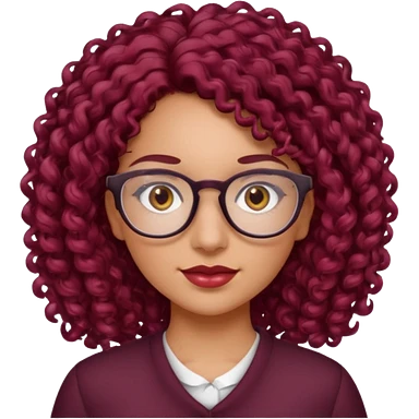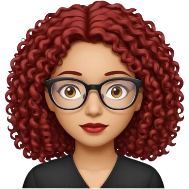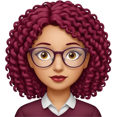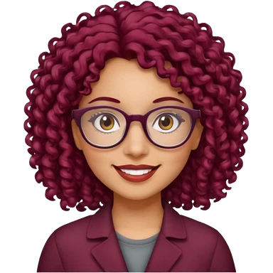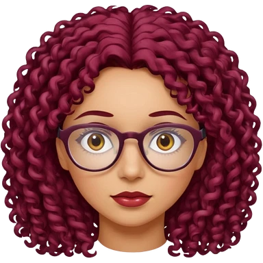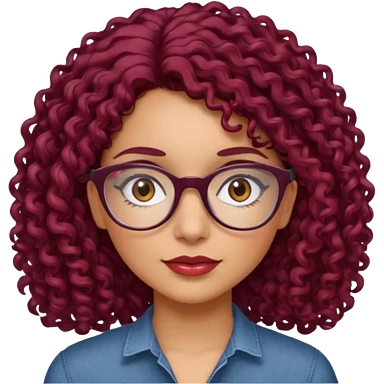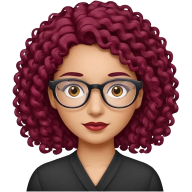 hispanic women with brown eyes and clear glasses and burgundy curly hair emoji
